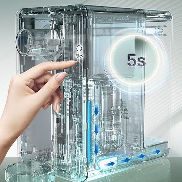يتميّز النظام بخزّان مياه، خزان مياه من الصنبور سعة 4 لترات وخزان مياه منقّى سعة 0,8 لترات، وذلك لتلبية الاحتياج اليومي. كما يتميز النظام بتصميم خارجي ذكي، ويمكن وضعه في أماكن مختلفة في المنزل لتوفر المياه بشكل فوري.
